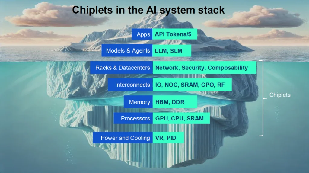 👉 Chiplets are embedded across every layer of the stack — from hardware to applications.
