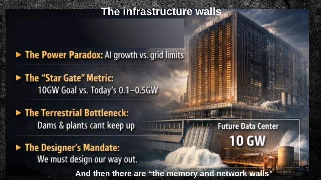 AI systems today are not compute-bound — they are wall-bound. Nasrullah identifies three converging constraints that hardware designers must address simultaneously:
