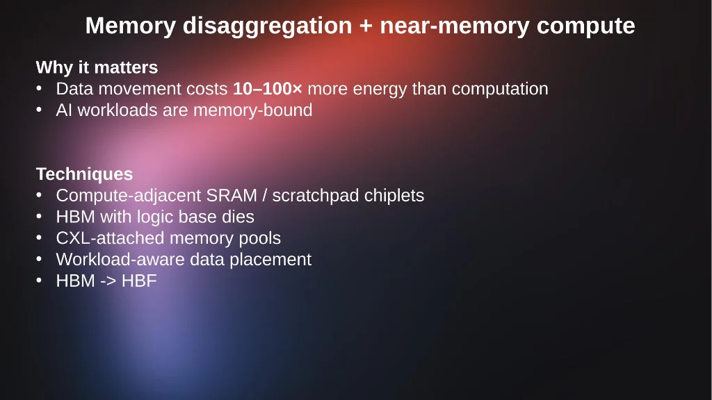 Memory wall: AI inference (particularly decode) is memory-bandwidth-bound. Systems are starved for data, not compute cycles.