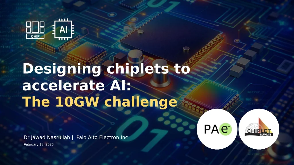 Author: Dr. Jawad Nasrullah, Affiliation: Palo Alto Electron Inc., Presented: February 18, 2026, Forum: Chiplet Summit 2026